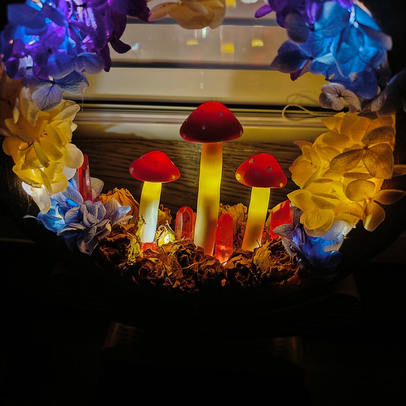 Bring a touch of magic and warmth into your space with our handmade Mushroom Glow Lamp. Carefully crafted from natural wood and dried flowers, this enchanting nightlight creates a cozy, dreamy ambiance perfect for any room. Whether used as a gentle nightlight, a unique home accent, or a thoughtful gift, its bohemian-inspired design adds charm and tranquility to your everyday surroundings.