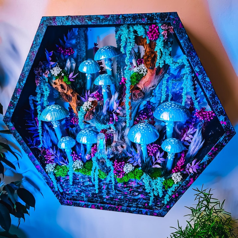 Bring a touch of magic and tranquility into your space with our enchanting Large Mushroom Wall Lamp. Inspired by fairy tale landscapes, this handcrafted piece features glowing mushrooms that create a warm, whimsical ambiance. Perfect for adding a cozy, calming vibe to any room, it serves as both a functional night light and a stunning decorative accent. Whether used in a bedroom, living area, or nursery, it transforms ordinary walls into a dreamy escape.